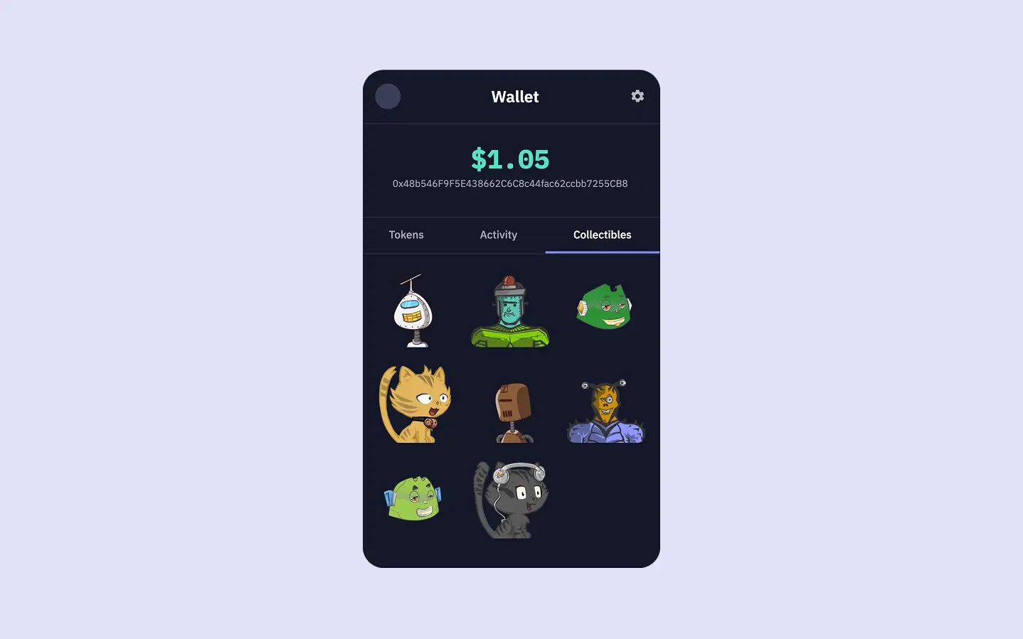 See the collectibles feature in action with the live demo below. Click on the “Collectibles” tab to browse the sample wallet’s NFT collection: